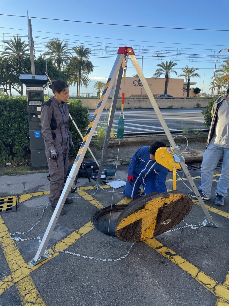 El equipo de ingenieros de 3D EAU desciende a la red para medir la geometría de los aliviaderos.